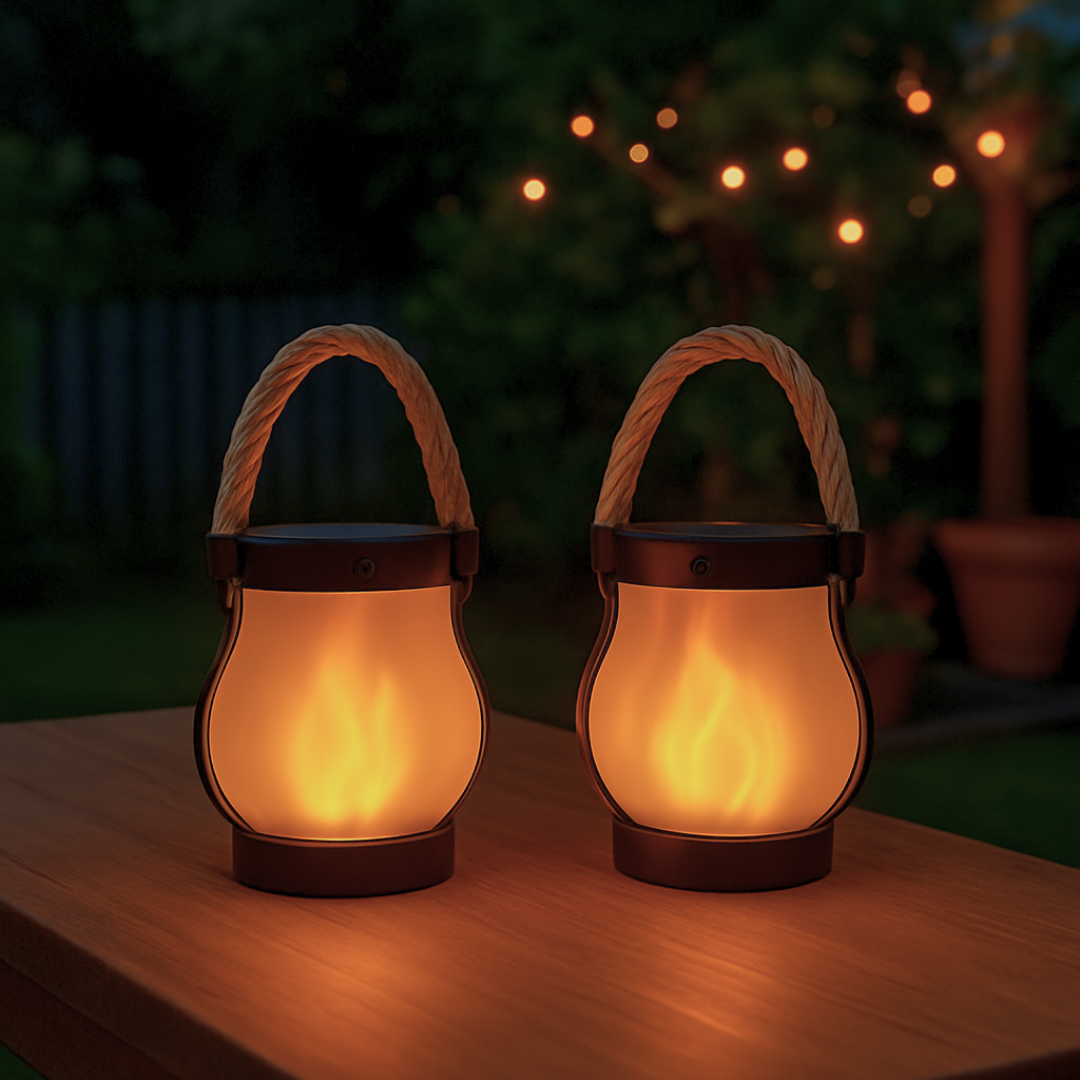A soft, amber flame dances gently in the breeze — no wires, no flames, no fuss.
