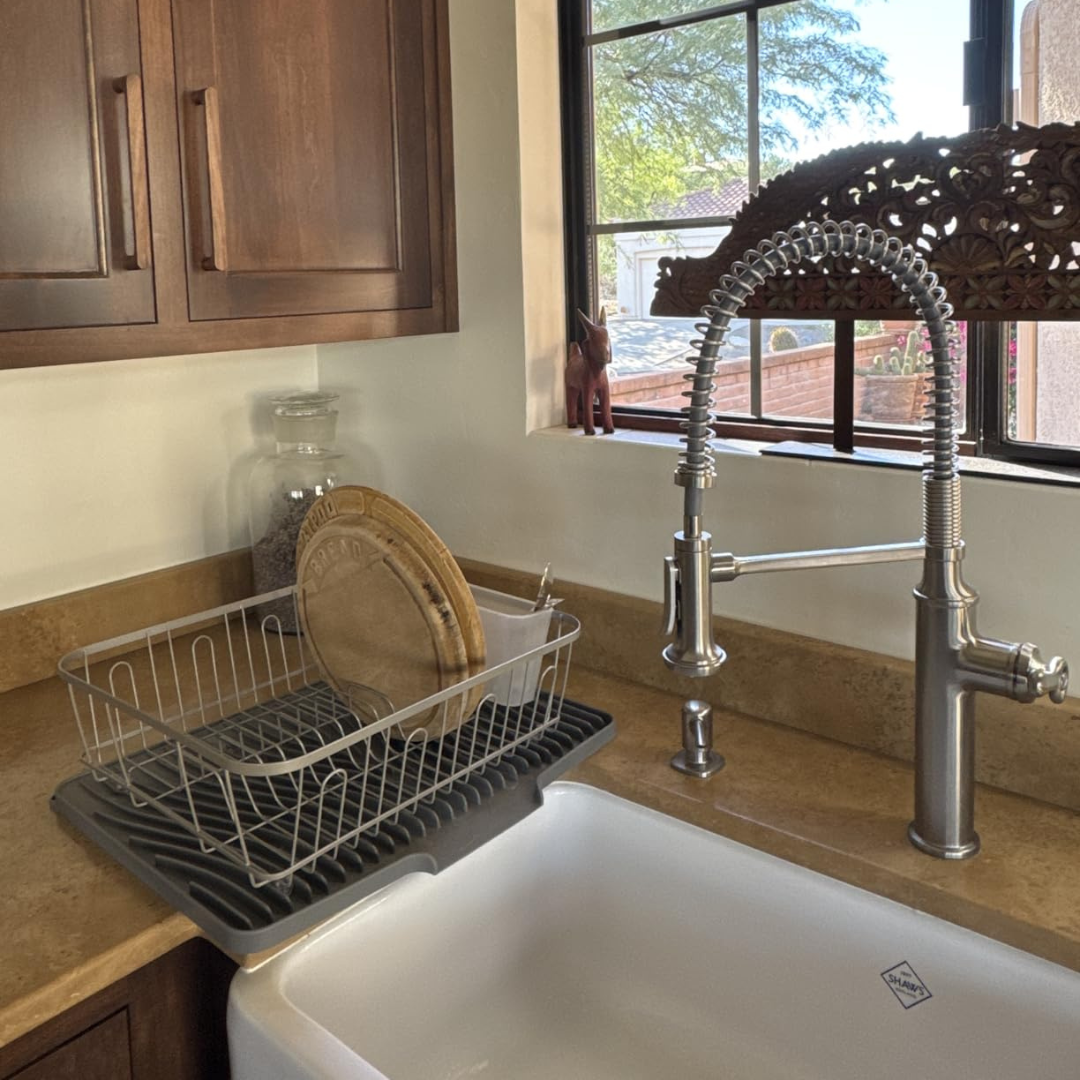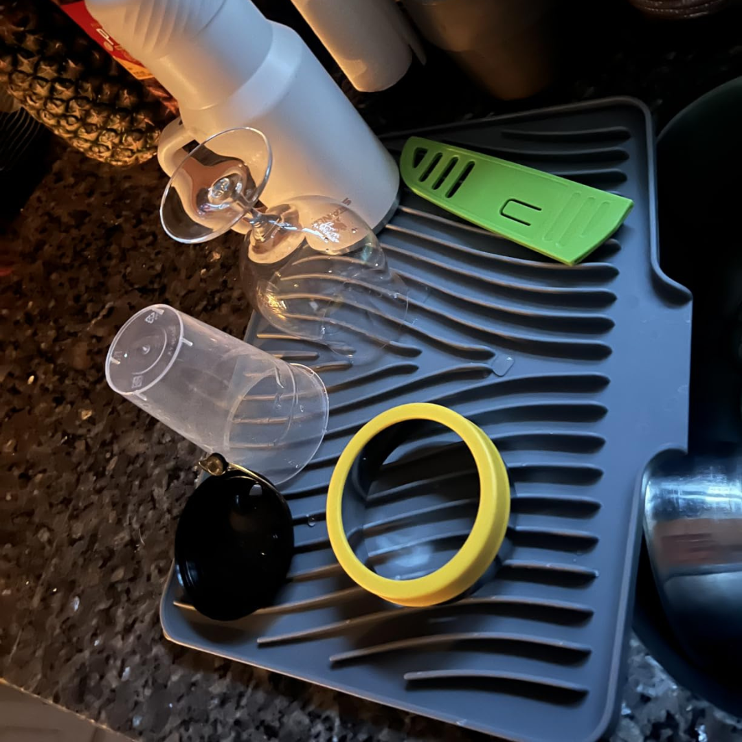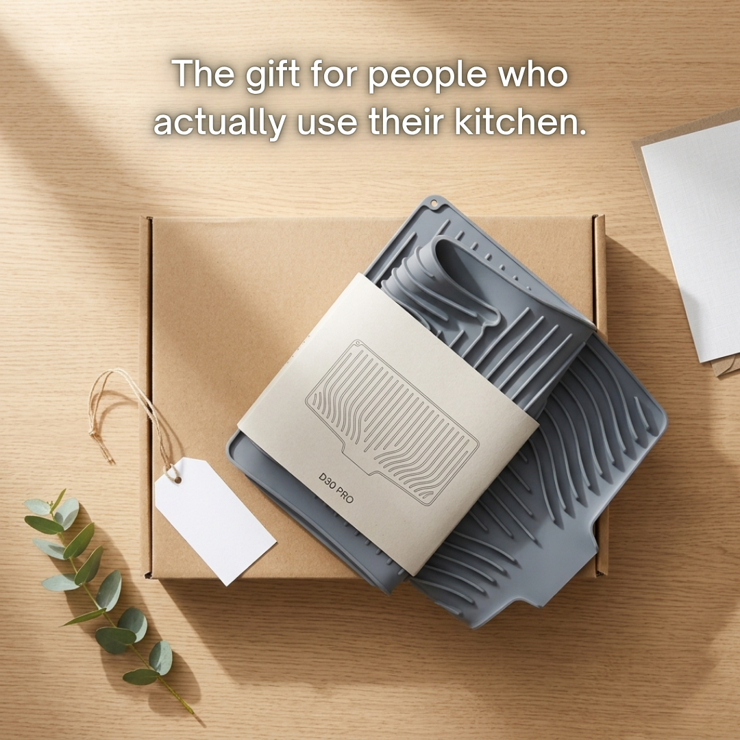 Picture walking into your kitchen in the morning — clean worktop, nothing to move, nothing to wipe under. Your dishes dried exactly where you left them, and the mat looks like it was chosen on purpose.