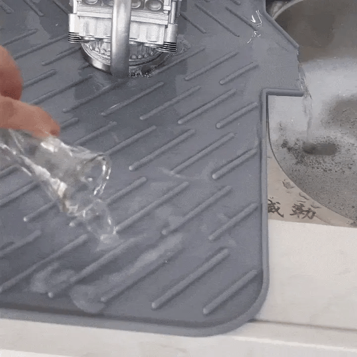 Any mat that lies flat on your worktop creates a seal. Water gets in. Water can't get out. That's not a mat problem. That's a physics problem. Every flat mat does this — microfibre, thin silicone, the cheap Amazon ones — all of them.