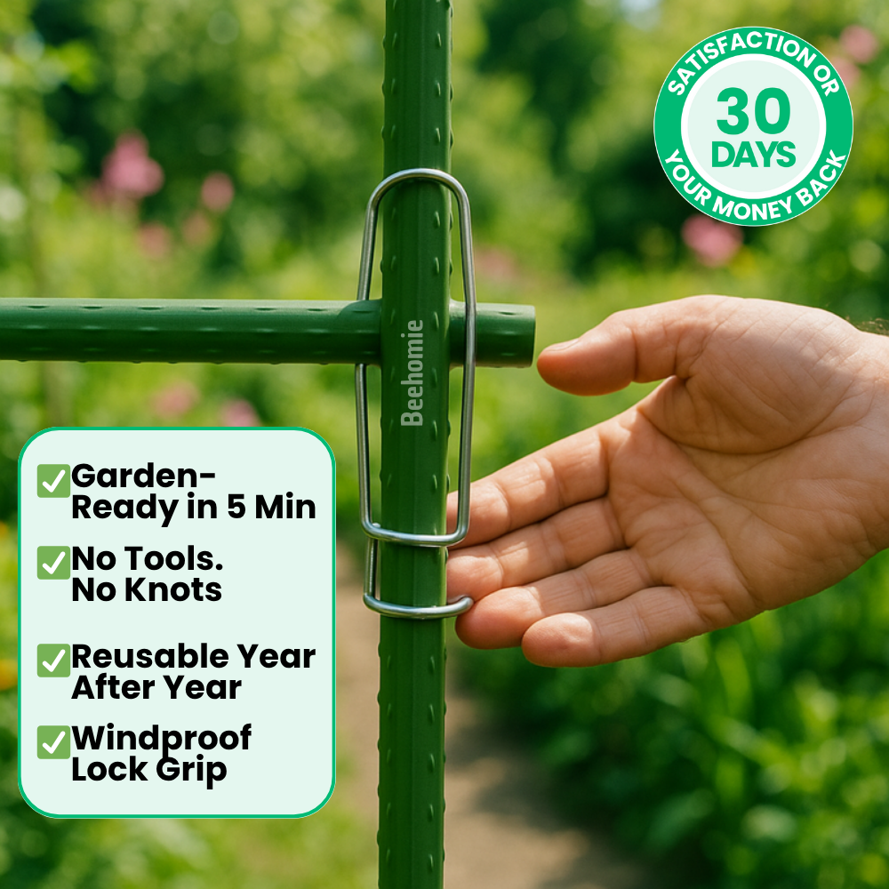 That depends on your layout. For most home setups, 30 clips are perfect for a simple trellis, bean frame, or tomato grid. For larger gardens or complex designs, we recommend two or more packs – and remember, they’re fully reusable season after season.