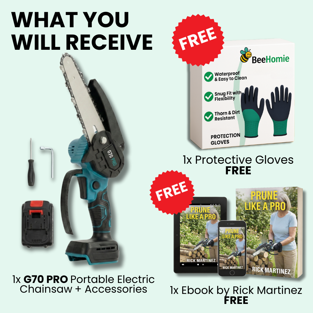 The G70 PRO is made for the real-world jobs most people actually face: pruning branches, trimming shrubs, clearing brush, and small wood/kindling. It’s the perfect “in-between” tool when loppers are too slow and a big chainsaw feels like overkill. If it’s not right for your needs, you’re protected by our money-back guarantee — and our BeeHomie team is available to help you choose the right setup.