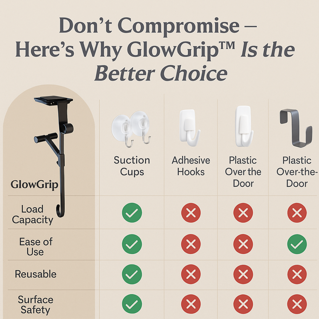 I’ve tried plastic hangers and suction cups before… they never work. Why is GlowGrip™ different?