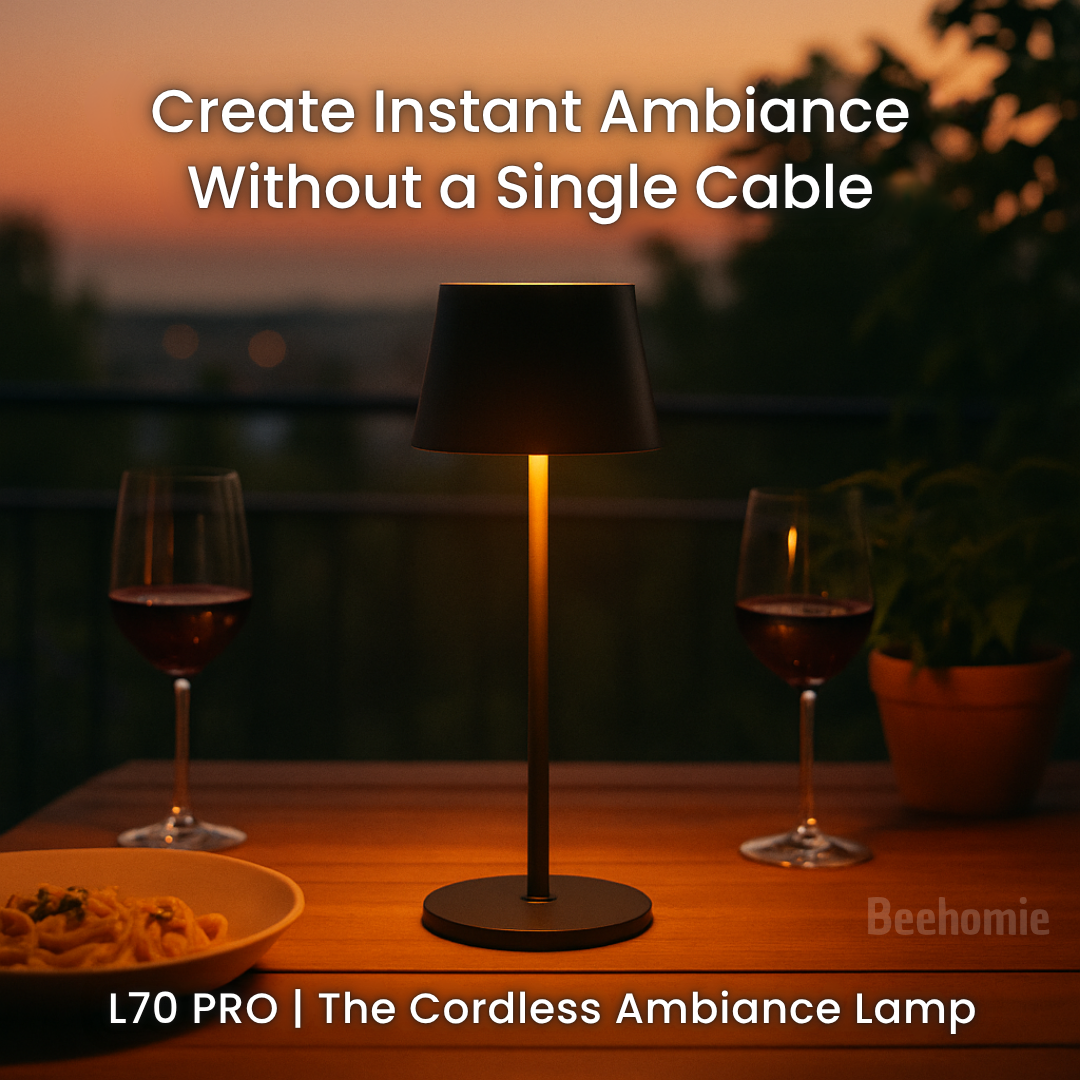 Absolutely. The L70 PRO is designed to enhance ambiance, not to replace a ceiling light β and thatβs the magic. Its TriGlowβ’ technology offers three lighting modes (Warm, Natural, White) so you can create the perfect mood for a cosy dinner, late reading session, or patio drinks.