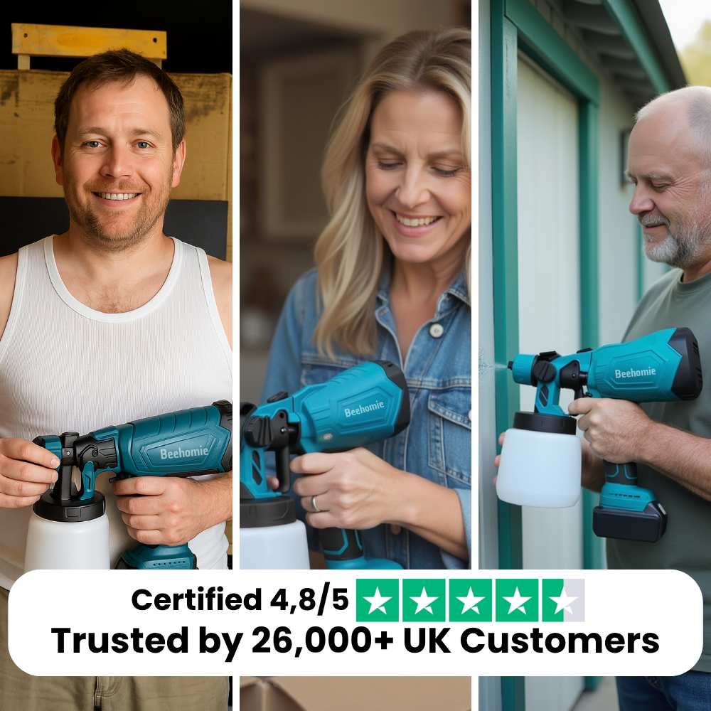 You don’t need any experience to get started. Just fill the tank, press the trigger, and start spraying. Most of our UK customers had never touched a sprayer before – now they’re painting full rooms and garden fences with pro-level results in under an hour.