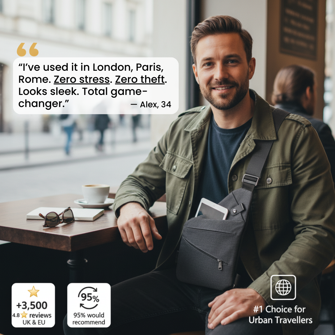Unlike traditional bags, it offers true anti-theft protection ā discreet, effective, and field-tested by real travellers in busy cities across Europe.