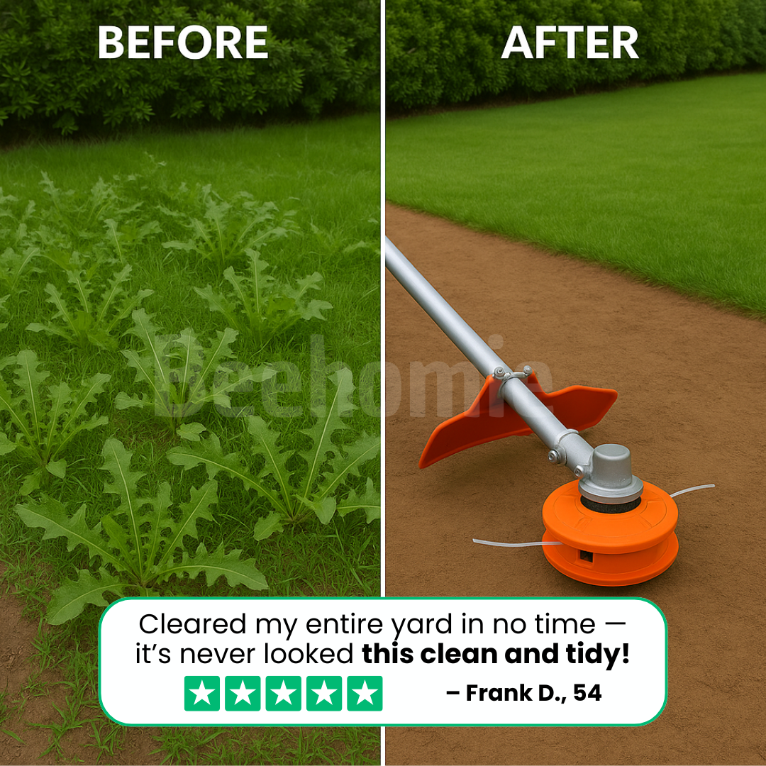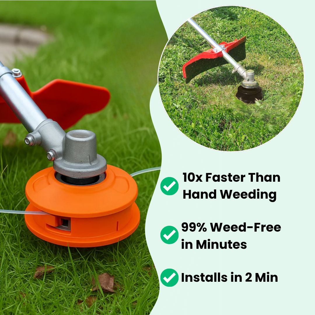 Every season, homeowners fight back overgrown grass, thick brush, and stubborn weeds — with fragile trimmer heads that jam, snap, or dull within days.